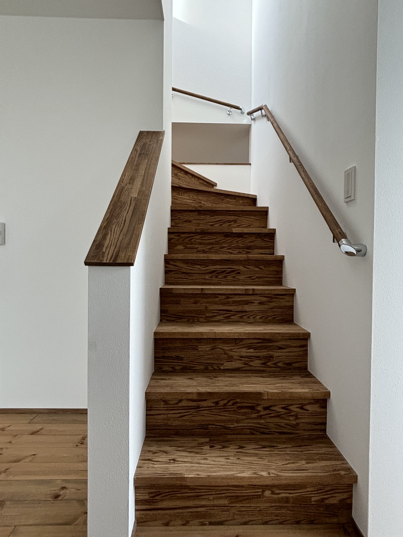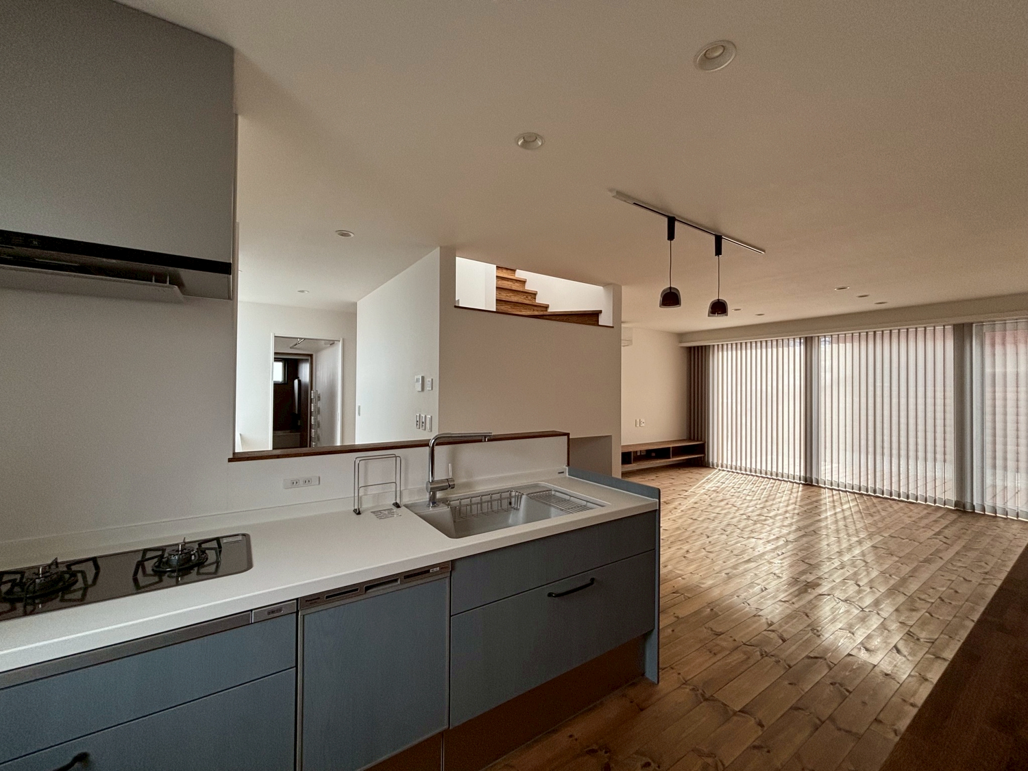 広々としたリビングや、やわらかさを感じられる無垢フローリング、階段に設けられた開口部はお子様も安全で楽しく、どこにいても気配を感じられるように設計。