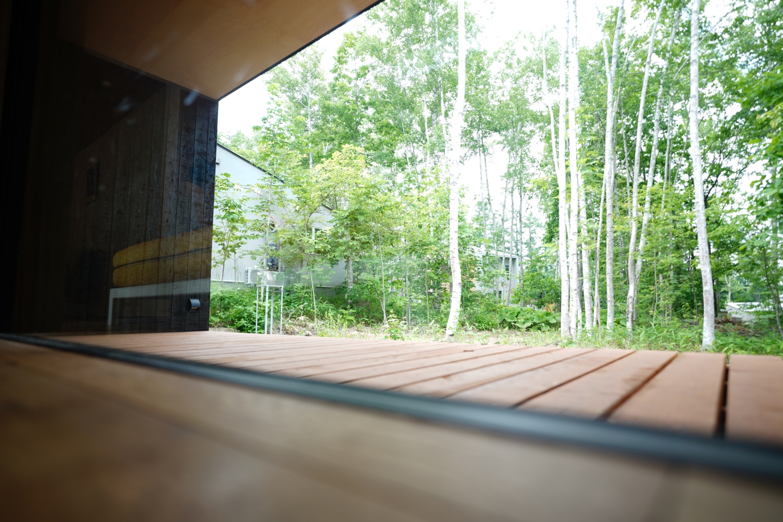距離が近いので、通路を作ったりすると、今見えている木を伐採しなければならなくなります。